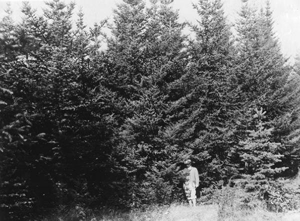 Valokuva vuodelta 1932 Mustilan metsiköistä näyttää arboretumin koeistutusten varttuvan. Kuvan taakse kirjoitettu teksti kertoo: "Abies balsamea, ikä 27 vuotta. Etualalla C. G. Tigerstedt. Puun siemen kotoisin Minnesotasta." (Kuvaaja Emil Vesterinen, Lusto - Suomen Metsämuseo: Suomen Metsäyhdistyksen kokoelma / Metsätaloudellinen Valistustoimisto) www.finna.fi (https://creativecommons.org/licenses/by/4.0/)