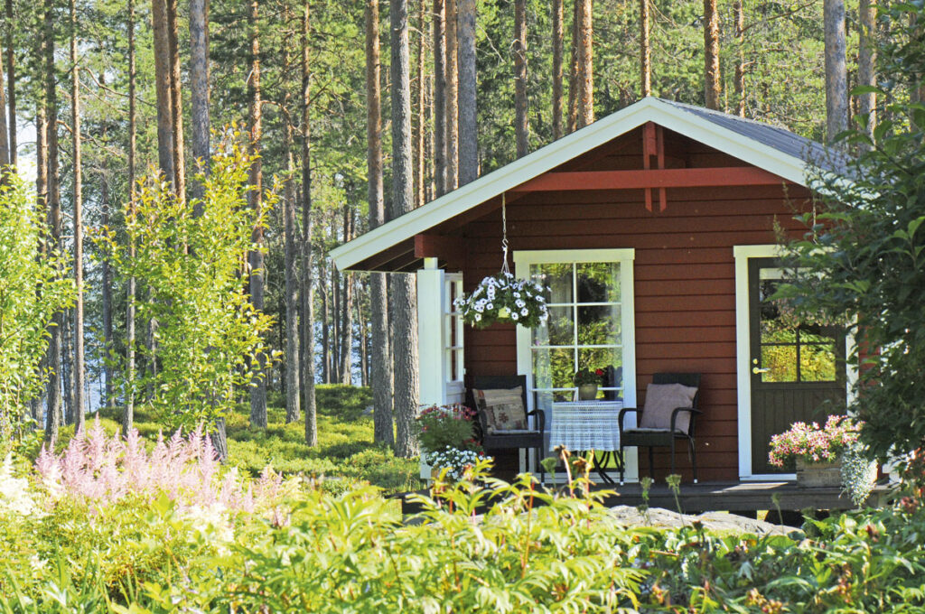 – Pikkuhiljaa tätä on tehty, Helli tuumii. – Minulla vain napsahtaa päähän, miten asiat pitää tehdä. Niin kuin tämä mökin paikkakin. Se oli jotenkin ensinäkemällä selvä.