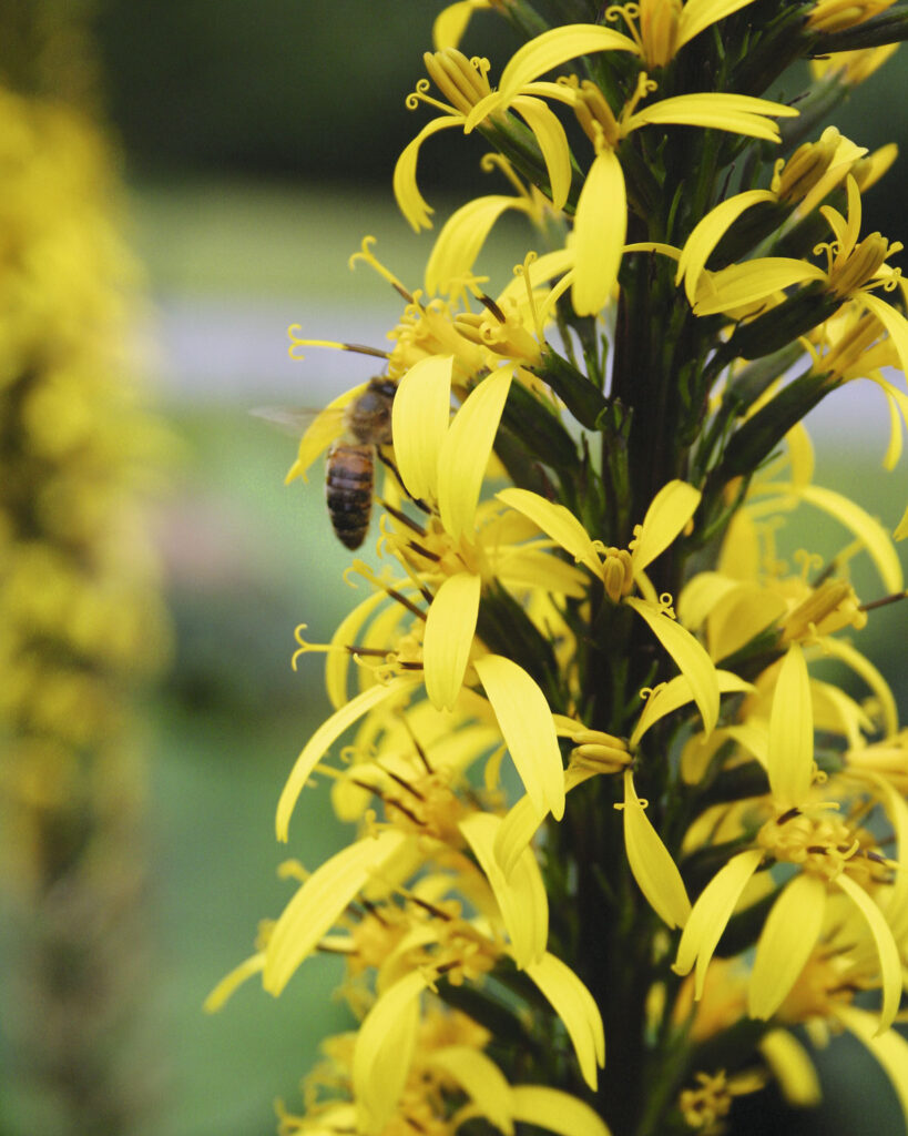 Nauhukset (Ligularia) ovat suuria, hienoja, keltaisia loppukesän kukkijoita. Nekin tarjoavat ravintoa kesän viimeisille perhosille.