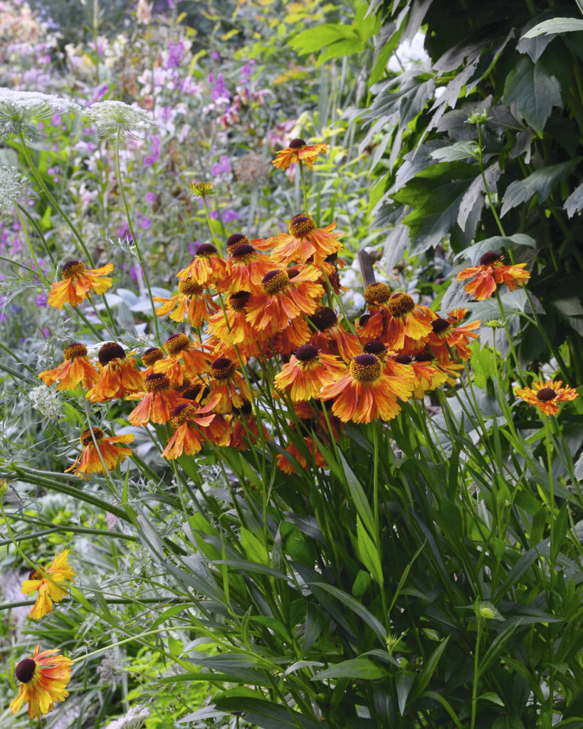Syksyyn mahtuu paljon keltaisia kukkia, kuten iso- ja syyskaunosilmä (Coreopsis grandiflora, verticillata), syyshohdekukka (Helenium Autumnale-Ryhmä), syyspäivänhattu (Rudbeckia laciniata) sekä kultapallo (R. ’Goldball’). Näillä saadaan perennapenkin kukintaa jatkettua hyvinkin pitkälle syksyyn. Monia näistäkin on saatavana isoina, kukkivina ruukkukasveina.