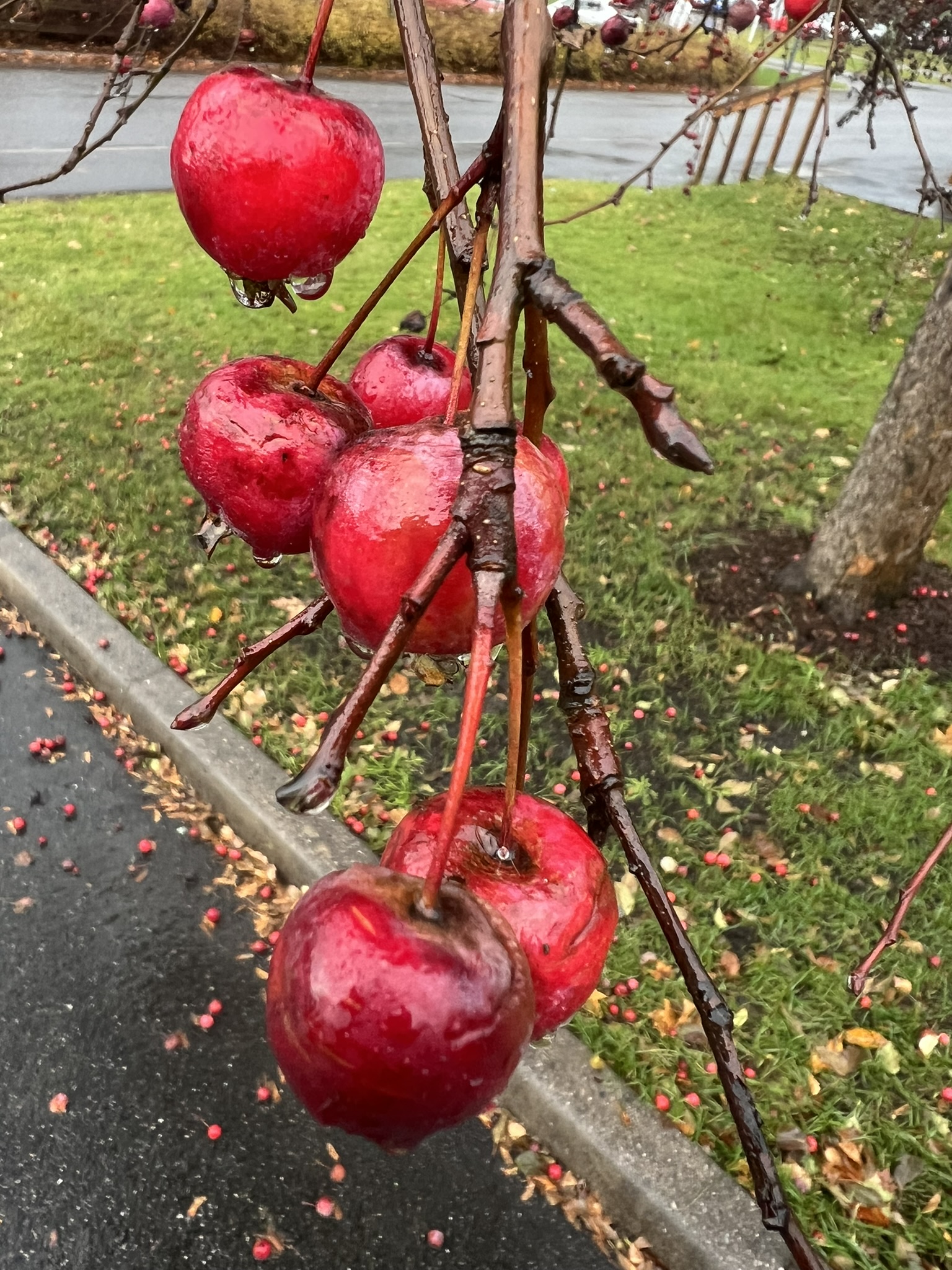 Nu i början av vintern lyser fortfarande många vackra bär och miniäpplen i buskar och träd. Mat för småfåglarna. En sak att minnas vid val av växter till trädgården.
