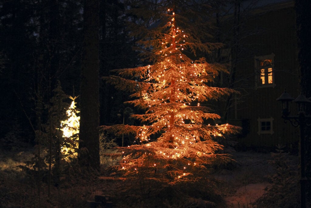 Pieniä itsestään kylväytyneitä kuusentaimia en raaski leikata pois. Ajattelen aina jouluvalojen kannalta, kuinka otollisella paikalla mikäkin kuusi mahdollisesti kasvaa ja miltä se näyttäisi täysin valaistuna vaikkapa kymmenen vuoden päästä. Kun tuhannet säihkyvät valot on viritelty, huokaan helpotuksesta – vihdoinkin valoa pimeään! Kun papat kaupan kassajonossa muikeasti hymyillen kyselevät ”Meinaatkos vielä parit jouluvalot laittaa?” ja ohi ajavat autoilijat iskevät pihani kohdalla jarrut pohjaan, tiedän että valoja on juuri sopivasti. Kun valaistu satumetsä on rakennettu ja pistoke on seinässä, tunnelma alkaa virittyä joulun odotukseen.
