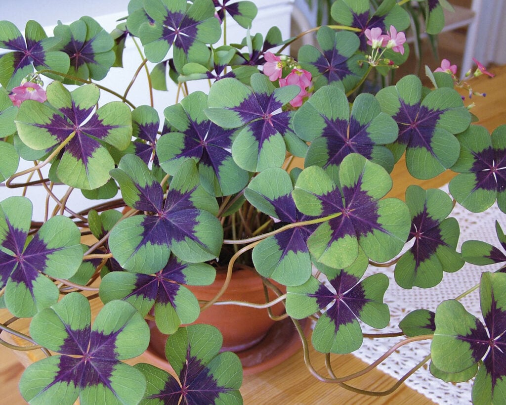 Vanha huonekasvi on myös onnenapila eli onnenkäenkaali (Oxalis tetraphylla). Se talvetettiin kellarissa ja kiikutettiin keväällä ikkunalaudalle. Nykyään tätä viehättävää apilalehtistä kasvia näkee usein ulkona kukkapenkin reunassa tai ruukussa terassilla, mutta yhtä hyvin se sopii sisäkasvatukseen etelä-, länsi- tai itäikkunalle. Sisätiloissa tulee vieläpä paremmin seurattua, kuinka lehdet ja kukat vetäytyvät suppuun pimeän tullen. Kasvi onkin saanut lisänimen torkkuliisa.