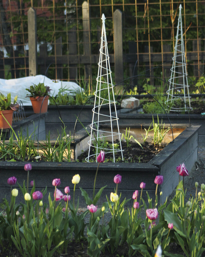 Keväällä kasvilavojen päällä on hyvä olla kaarimaiset tuet, joiden varaan voi kylvön jälkeen levittää kasvuharson. Harson avulla lavoissa säilyvät lämpö ja kosteus, mutta valo pääsee hyvin läpi. Lisäsuojan turvin päästään kylvöpuuhiin heti, kun multa on sulanut.