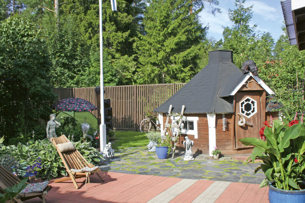 Rakkaudella perustettu pikkupiha kutsuu oleskelemaan ja viihtymään. Viehtymys niin Kreikkaan kuin Lappiinkin tekevät pihasta omistajiensa oloisen keitaan keskelle kaupunkia.