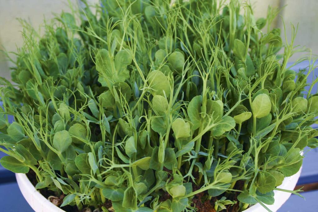 Versoviljelyssä siemenet kylvetään tiheään. Herneet itävät nopeasti ja kasvavat pian korjuukuntoon.